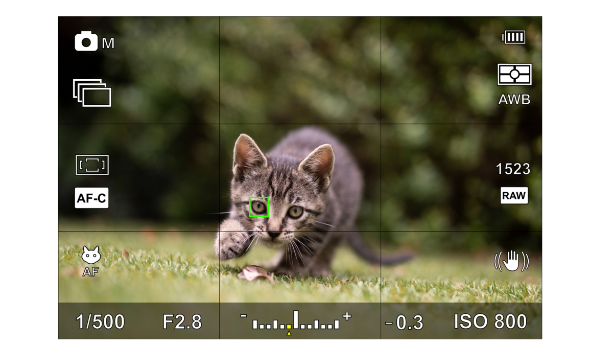 - Salaman tehon säätö, valaisuteho ja kuvausetäisyys.